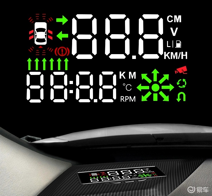 可根据自己车主个人习惯选择显示模式组合,有简洁模式、有多种功能一直组合模式,比如需要看时间、车速、导航,那就选择这个模式,随心所欲,让开车车况信息一目了然。