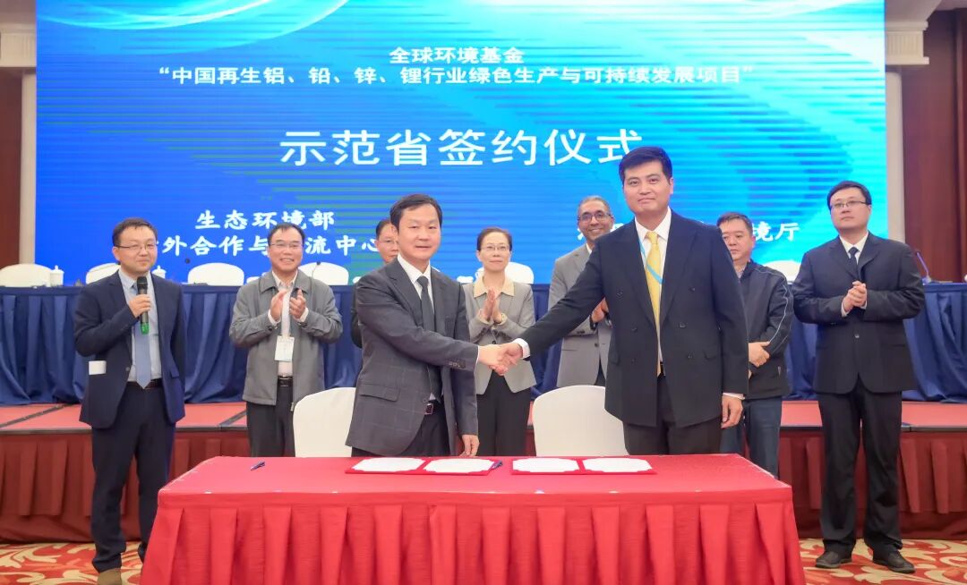 ▲全球环境基金“中国再生铝、铅、锌、锂行业绿色生产与可持续发展项目”签约仪式。摄影|通讯员颜志高