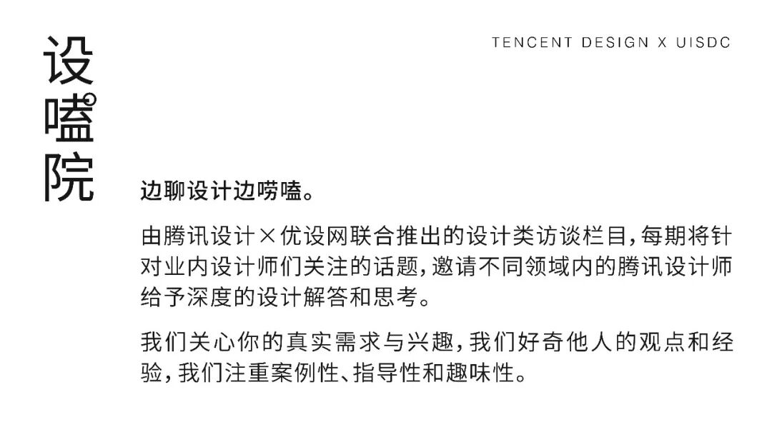 优设推荐关注“腾讯设计”官方公众号,第一时间获取腾讯的设计方法论