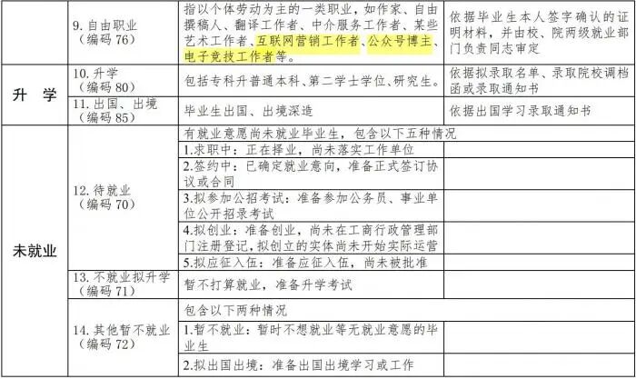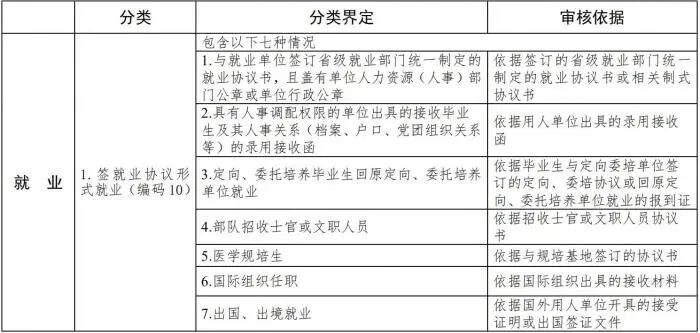 (《通知》规定的高校毕业生就业去向界定及标准)