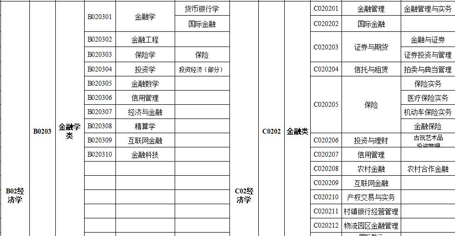 专业参考目录(学科对应具体专业目录)