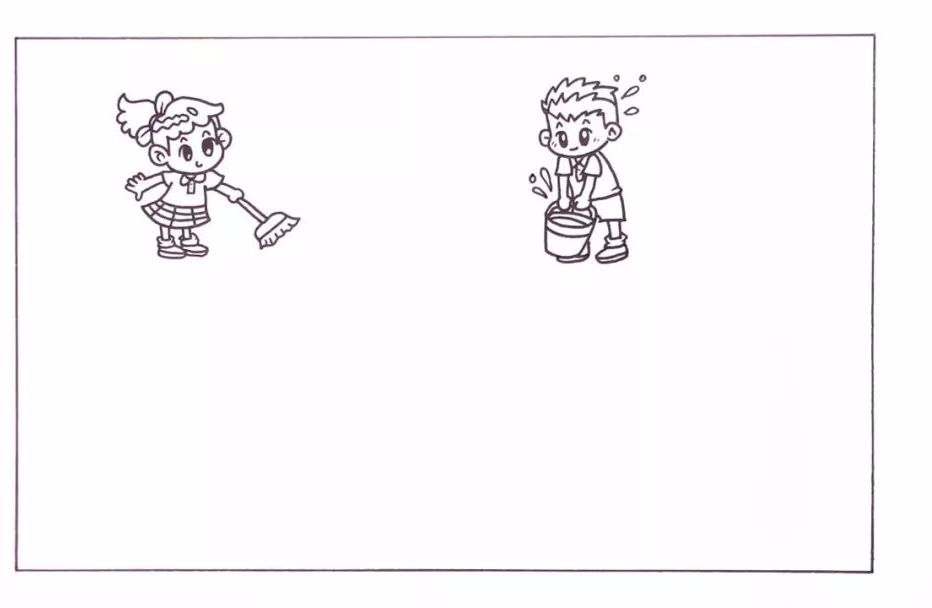 1、劳动节主题我们要画出校园里的劳动场景,在画面的左边我画出了一位正在打扫的小女生。
