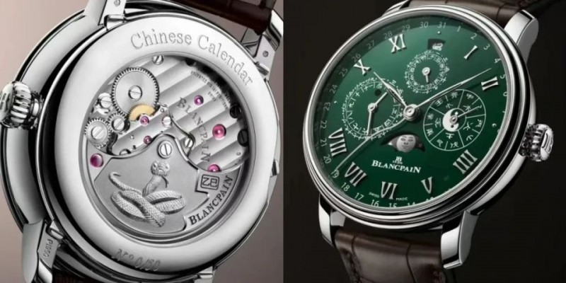 宝珀推出中华年历蛇年限量款腕表,将天干地支、阴阳五行、十二时辰、生肖、月相等中华传统元素呈现于表盘之中;