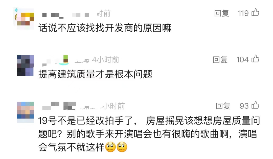 据上海法治报今年10月23日报道,经过专业部门对后续演唱会实时监测并实地走访后,初步分析认为,房屋震动情况可能与演唱会有关。